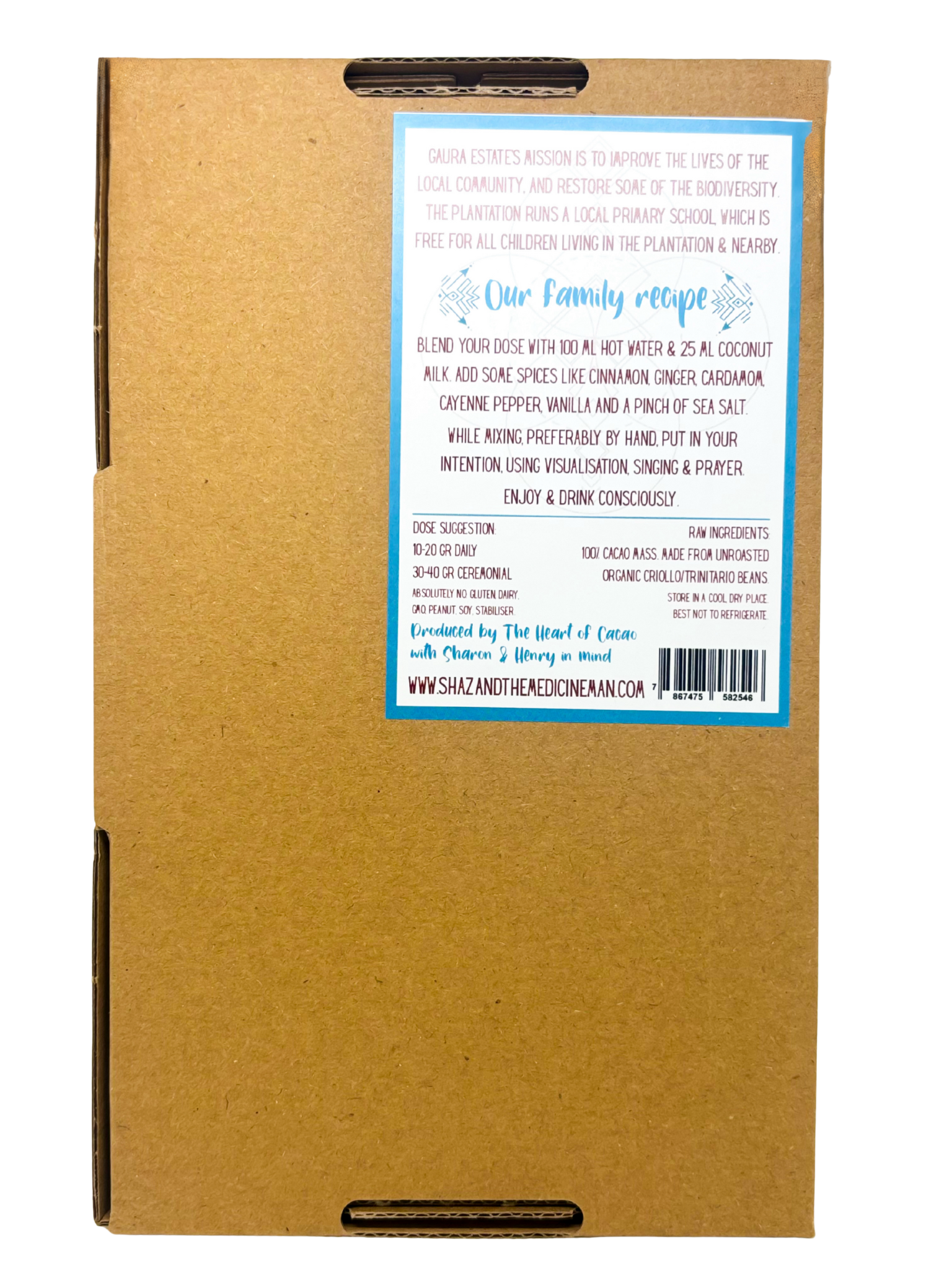 Denne ceremonielle kakao stammer fra Sumba Island – Gaura Estate i Indonesien, hvor den bliver dyrket og fremstillet med omhu af lokale farmere. Produktionen bygger på integritet og fællesskab og støtter direkte de omkringliggende lokalsamfund gennem bæredygtig praksis og fair samarbejde.